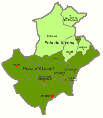 La comarca de L’Alcantí, también llamada «Campo de Alicante», comprende los municipios que rodean a la capital provincial, Alicante, que es a su vez capital comarcal.